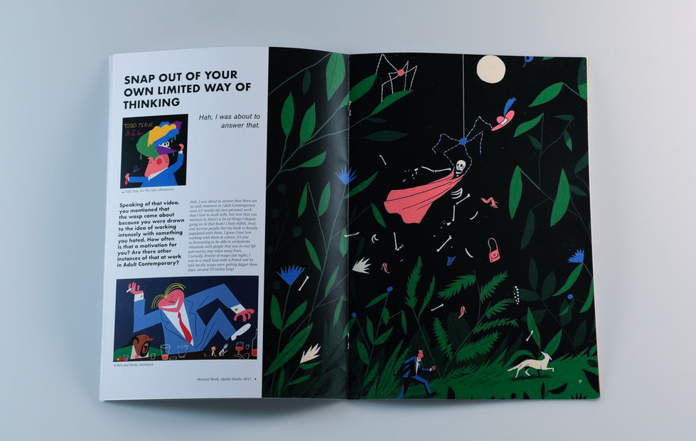 Dies ist ein Magazin, das im Rahmen einer Aufgabe an der Vilnius Academy of Arts (VAA) erstellt wurde. Die Aufgabe bestand darin, ein Editorial Design auf der Grundlage eines Designers oder Illustrators zu entwerfen, sowohl für Print- als auch für digitale Medien. Die Illustrationen im Magazin stammen von dem norwegischen Illustrator Bendik Kaltenborn, und der Text ist einem Interview entnommen, das von der digitalen Kunstplattform booooooom.com geführt wurde.